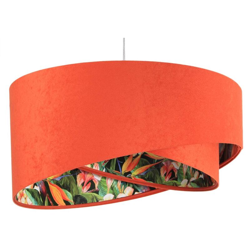 Altezza paralume: 230, diametro: 500 Peso in kg: 1,3 Tipo di lampadina/attacco: E27 Lampadina inclusa: NO (compatibile con lampade LED e a risparmio energetico) Potenza massima in watt: max.1X60W Grado di protezione: IP20 Dimmerabile: SI Materiale vetro/paralume: Tessuto in velluto su PVC con stampa eco-lattice Colore vetro/paralume: arancione, multicolore Informazioni aggiuntive: Cavo trasparente 80 cm