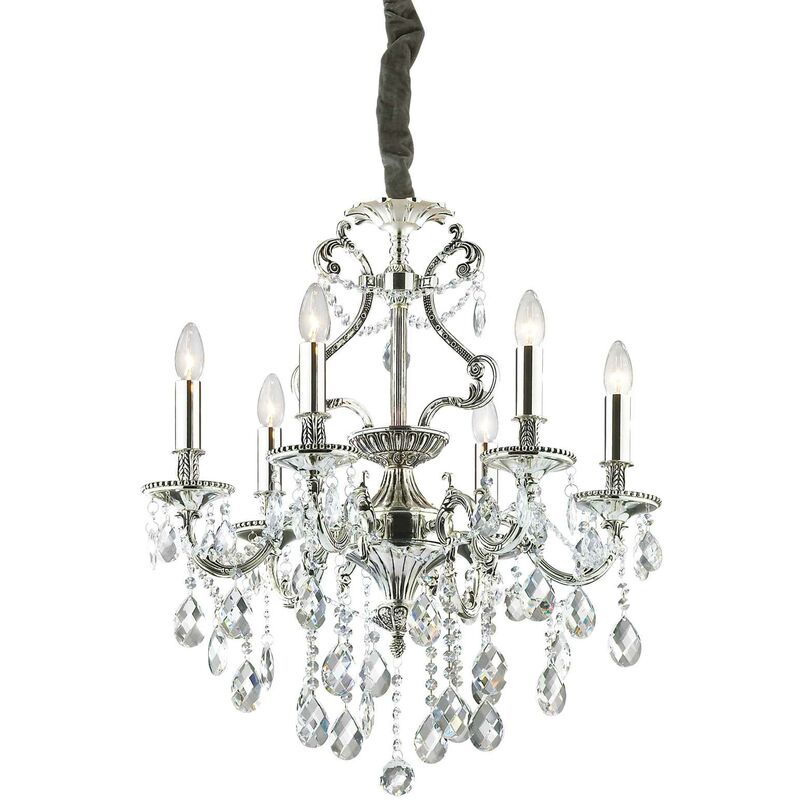 Lampada sospensione Gioconda Argento D620xH790-1180mm Caratteristiche: Lampadina inclusa=No Kit fissaggio=No Attacco lampada=E14 Volt=220-240 V AC Watt=E14 max 6 x 40W Materiale=Metallo,Vetro Dimensioni= D 620 x H min 790 / max 1180 mm