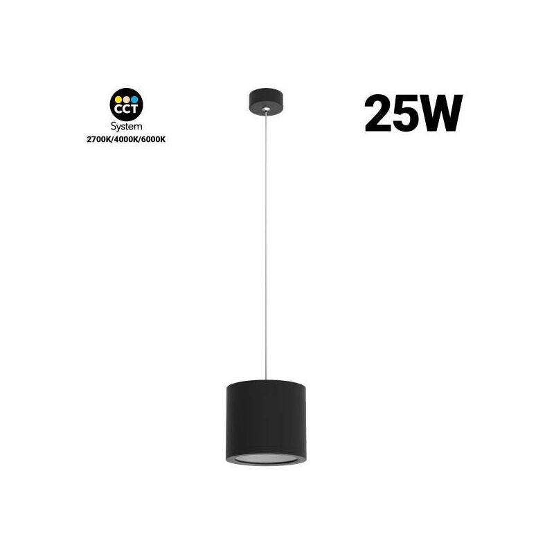 Lampade a sospensione CCT LED di forma cilindrica. Progettato in alluminio con una potenza di 25W. Ideale per l'installazione in cucine, corridoi, negozi, vetrine, hotel e bagni. Queste plafoniere sono dotate di un potente LED di tipo COB che fornisce un intenso fascio di luce con la massima efficienza e un'elevata intensità luminosa, pari a 1500 lumen. Facile da installare in qualsiasi tipo di soffitto. Con sistema CCT per regolare la temperatura con un solo pulsante cambiando tra (2700K;