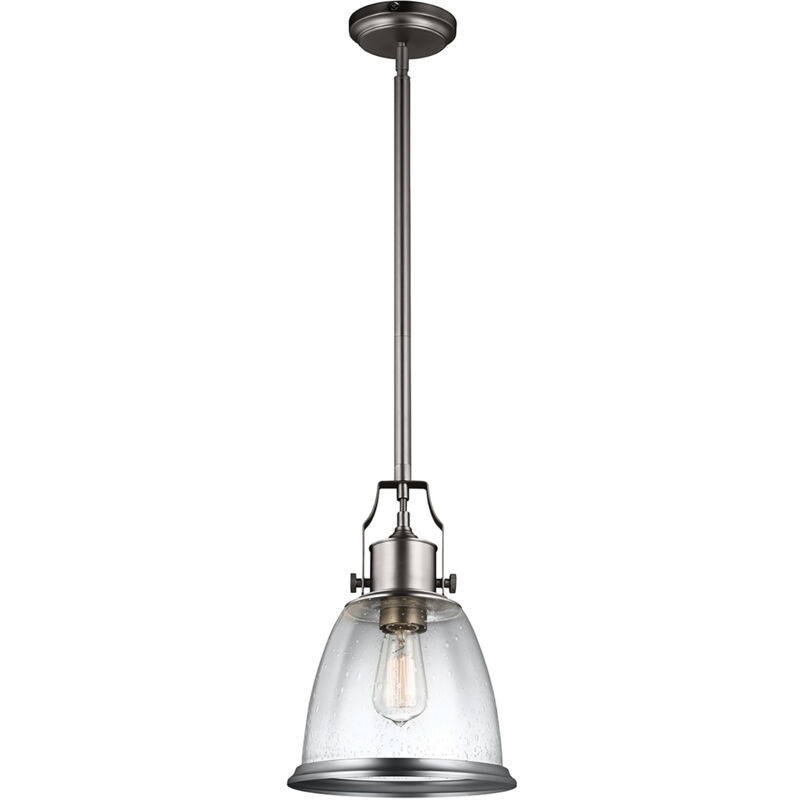 Collezione Hobson DETTAGLI MODERNI Lampada media a sospensione a 1 luce - Nichel Satinato . La collezione di lampade Hobson di Feiss porta la sospensione di ispirazione industriale a un livello completamente nuovo per i dettagli e la tecnologia moderni. Il perno superiore aggiunge autenticità, insieme al vetro effetto seminato. Disponibile in ottone anticato o nichel satinato. La sospensione singola è disponibile in dimensioni grande e media.