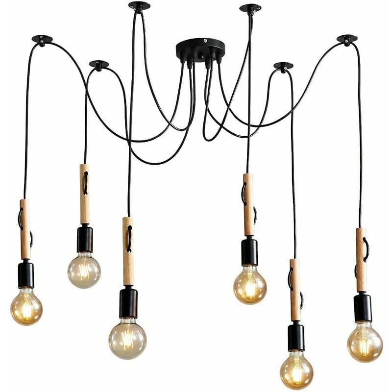 Lampadario in legno massello, non facile da deformare, non facile da sbiadire. Tipo di lampadina: la lampada a sospensione industriale retrò viene fornita con 6 prese E27 (lampadina non inclusa), puoi scegliere la tua lampadina preferita. Tensione