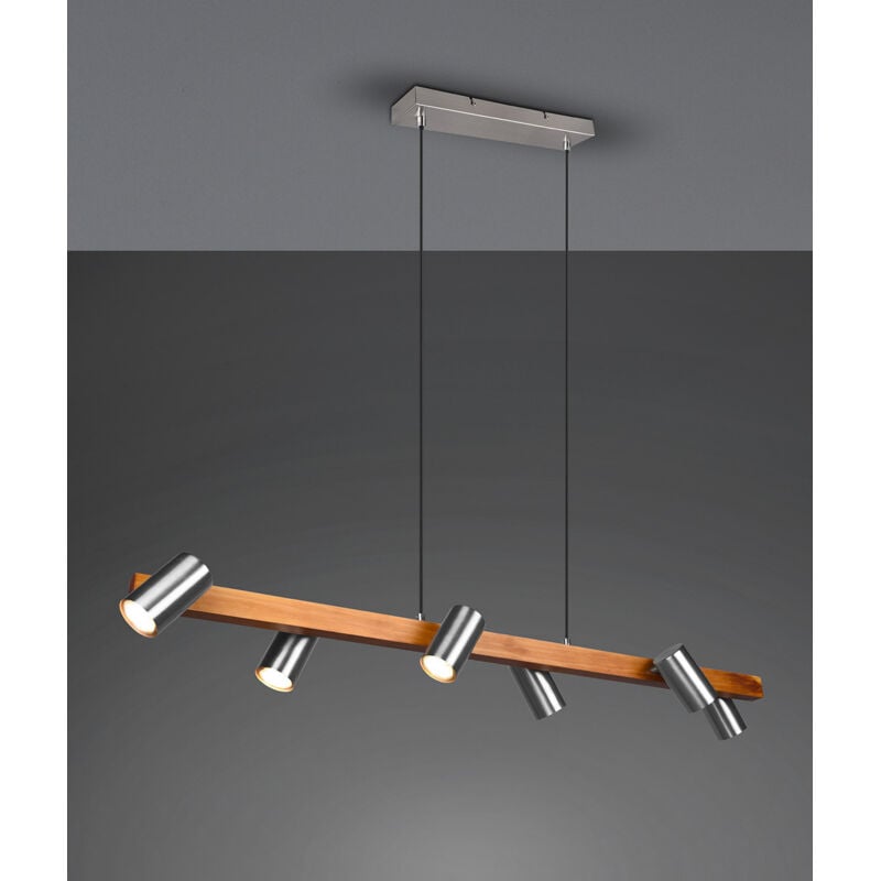Lampadario Lampada a Sospensione da Interno Attacco GU10 in Metallo Nickel Opaco Marley Sospensione Rettangolare con Barra Legno 6 Cilindri Acciaio Satinato L. 115Cm Caratteristiche Tecniche Stile Moderno Fonte di luce principale: Lampadina (non inclusa) Attacco GU10 Materiale: Metallo Colore Finitura: Nickel opaco Potenza (W): 3 Lumen: 250 Kelvin: 3000K Alimentazione (V): 230 Durata Nominale (h): 20000 Numero Accensioni: 20000 Classe energetica: F Larghezza (cm): 115 Altezza (cm): 150 Profondita (cm): 20