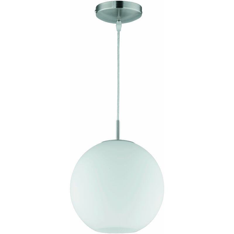 Lampada Lampada a Sospensione da Interno E27 in Metallo Nickel Opaco Moon Sosp.Sfera Vetro Bianca D.25 Caratteristiche Tecniche Stile Moderno Fonte di luce principale: Lampadina (non Inclusa) Attacco E27 Materiale: Metallo Colore Finitura: Nickel Opaco Potenza (W): 42 Lumen: 625 Kelvin: 2800K Alimentazione (V): 230 Durata Nominale (h): 2000 Numero Accensioni: 8000 Classe energetica: G Altezza (cm): 150 Diametro (cm): 25 Peso netto (kg): 1,145