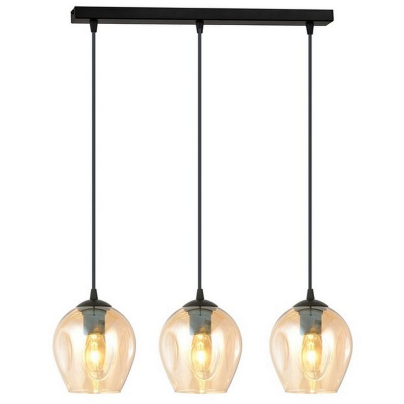 Questa lampada a sospensione è la soluzione perfetta per illuminare con stile la casa o l'ufficio. Grazie al suo design è ideale per la zona giorno e la zona notte. Kit di montaggio incluso, facile da pulire e facile da montare. Colore: Nero, Ambra Materiale: Acciaio verniciato a polvere, Vetro Set: 1 Dimensioni Prodotto: 70x100x14 cm Peso Prodotto: 2,40 Peso Supportato: - Info Lampadine: 3 x E27, 230V, 10W MAX LED, IP20 Lampadina: Non Inclusa Dimensioni Imballo: 67x21,5x23 cm Peso Imballo: 3,40 Numero di Colli: 1