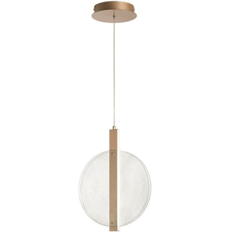 Lampadario a sospensione a Led JUIS realizzata in metallo verniciato e vetro texturizzato. Cavetti regolabili in lunghezza. Una lampada dal design moderno, perfetta per arredare e illuminare ogni spazio della vostra casa con un tocco di originalita'. CARATTERISTICHE Colore: Oro Materiale: Metallo, vetro Tipologia: Lampada a sospensione Modello: Piccolo Altezza max: 296 cm Diametro: 30 cm Dimmerabile: No Illuminazione: LED integrato Potenza: 20W 1200-2000 LM Input: 220-230V Colore luce: 3000K