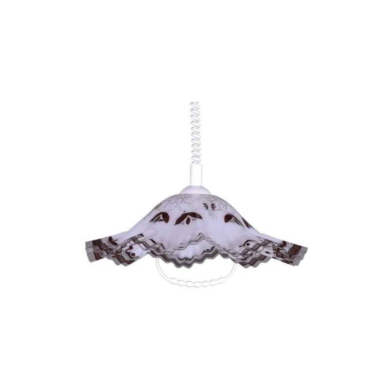 Lampada da cucina vintage Guardando la serie LAMBADA, viene in mente il pensiero degli stili retrò e vintage. Questi sono motivi immortali nel design degli interni. Grazie a questo, quando scegli una lampada di questa serie, non devi preoccuparti del cambiamento delle tendenze. Questo modello viene spesso utilizzato nelle cucine e nelle sale da pranzo. A nostro avviso sarà altrettanto bello da vedere nei ristoranti dallo stile "slow life" e regionale. Questa serie comprende ben otto varianti di colore, così ognuno troverà il modello che riempirà al meglio il proprio spazio. Regola l'altezza della lampada in base alle tue esigenze. Il paralume in acrilico bianco e marrone è collegato a un cavo bianco formato da un spirale. Grazie alla maniglia posta sotto il paralume è possibile accorciare ed allungare la lampada fino a 85 cm, a seconda delle esigenze e delle condizioni tecniche dell'ambiente. Il marrone intrecciato nella combinazione di colori fa sì che questo lampadario si abbini