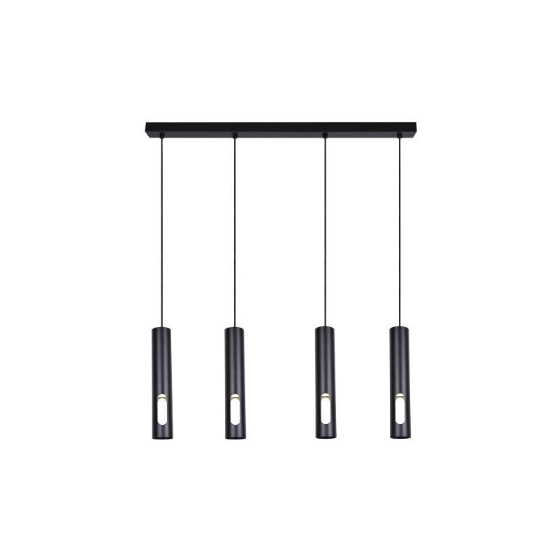 Lampadario K-4867 della serie ENOL La serie di lampadari ENOLA è una combinazione di modernità e una forma grezza e minimalista che conferirà agli interni un'interessante atmosfera industriale. Il colore nero è una scelta molto universale, funziona bene con qualsiasi combinazione di colori e garantisce un complemento perfetto per qualsiasi interno. Elementi neri dalla forma semplice, classica e senza tempo appesi a cavi fanno sì che il lampadario di questa serie diventi automaticamente il punto principale della stanza e tutta l'attenzione si concentra su di esso. Questo tipo di lampadari verrà utilizzato non solo nelle case, ma anche negli uffici, nei ristoranti e negli hotel. Caratteristici di questa serie sono i paralumi geometrici a forma di tubi, che hanno ritagli ovali nella parte inferiore. Grazie ad essi la luce non solo cade direttamente verso il basso, ma parte di essa fuoriesce lateralmente, lasciando sulle pareti della stanza una luminosità suggestiva. Le sorgenti luminose