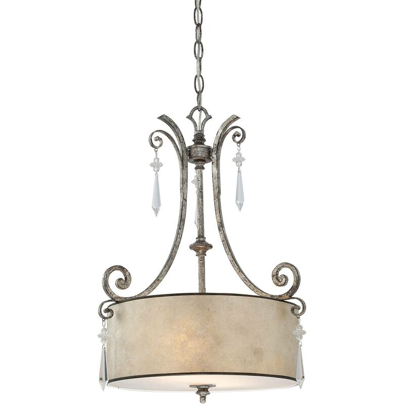 Lampada sospesa Kendra 2xe27 H: 55.9 Ø: 43.2 Dimensioni in mm: Altezza: 559, diametro: 432 peso in kg: 4950 mezzo luminato incluso: no Tipo di lampada/versione: E27 Prestazioni massime in Watt: 60 Dimmable: No Classe di protezione: IP20 Materiale per la casa: Metal, Mica Glass perla, Crystal Colore: Silver Preset