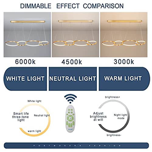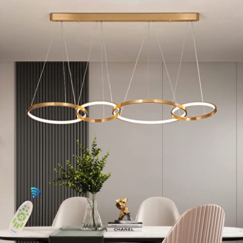 Lampada a sospensione LED Lampadario moderno da tavolo da pranzo Lampadario regolabile in altezza Lampada da soggiorno dimmerabile con telecomando Cafe Restaurant Plafoniera,4 rings 94W
