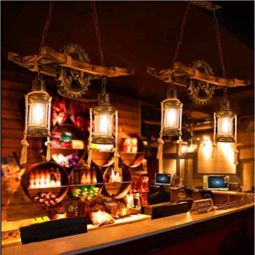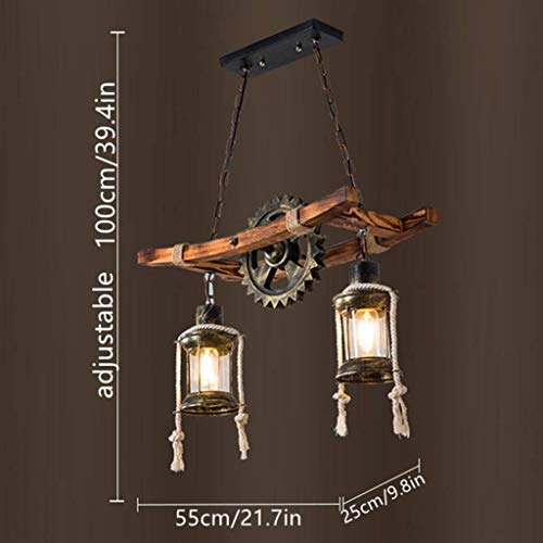 2. Disegno: legno naturale, lampadario finitura retrò con passaggio stondato. paralume rustico in ferro nero e vetro trasparente, con decorazione corda di canapa, creativo lampada a sospensione vintage Questo lampadario chic è perfetto per enfatizzare un tema rustico o industriale., Nota: per la sicurezza della lampada, l'ingranaggio utilizza una piastra di compressione, che è solo un gioiello e non influisce sul suo aspetto e utilizzo