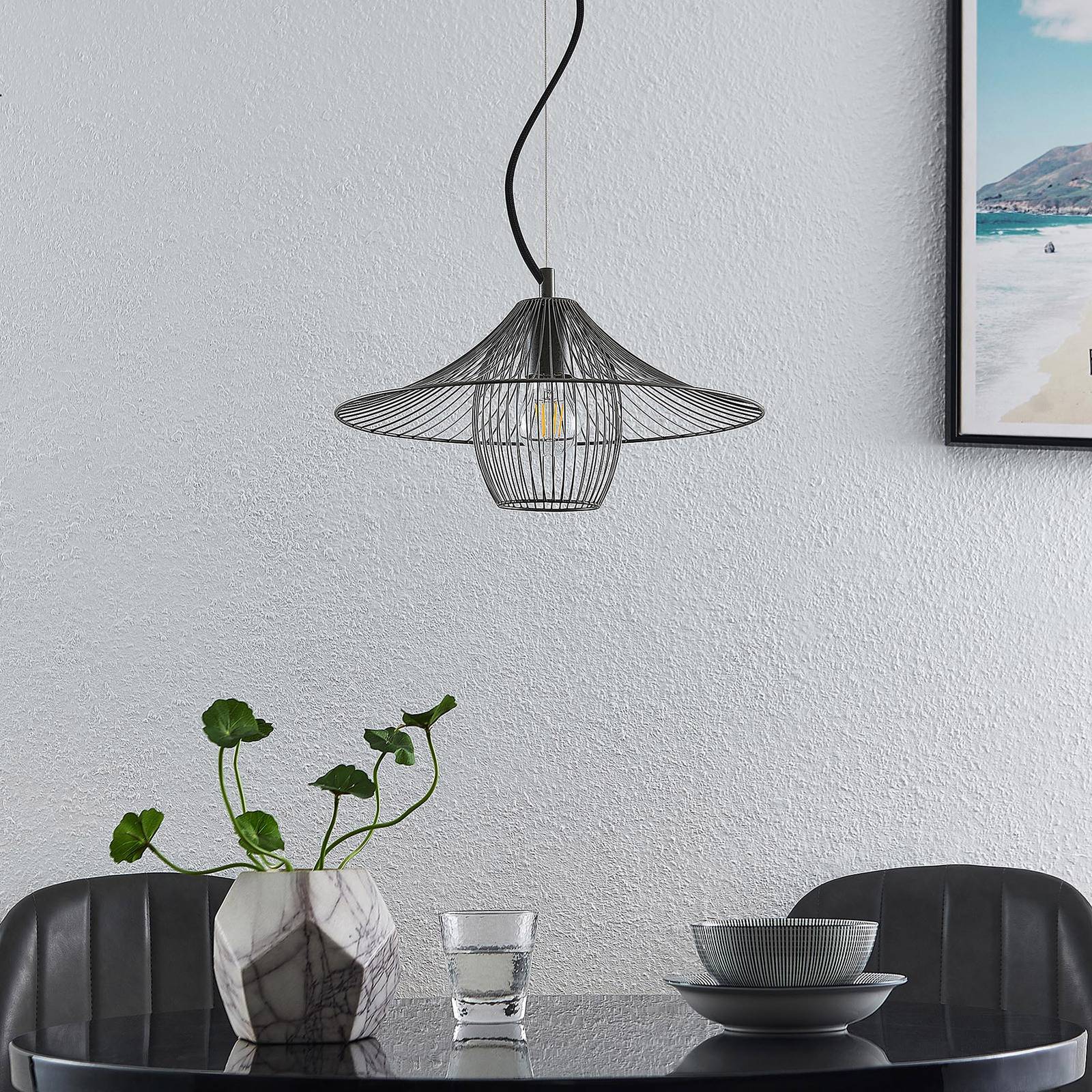 Lampada a sospensione Eimo nera con paralume in acciaio a rete Eimo è un'aggiunta sorprendente al design degli interni. È composta da due paralumi le cui pareti sono realizzate in rete d'acciaio. All'interno di questi paralumi si trova un portalampada che può essere dotato di sorgenti luminose appropriate, offrendo una libera scelta del colore di luce e dell'intensità luminosa. Grazie alla sua sospensione, la lampada a sospensione Eimo è perfetta per essere installata sopra un tavolo da pranzo e può fornire una luce sufficiente. Il colore nero e pacato completa il design Mod dell'apparecchio e si integra facilmente in vari stili di arredamento senza disturbarli.