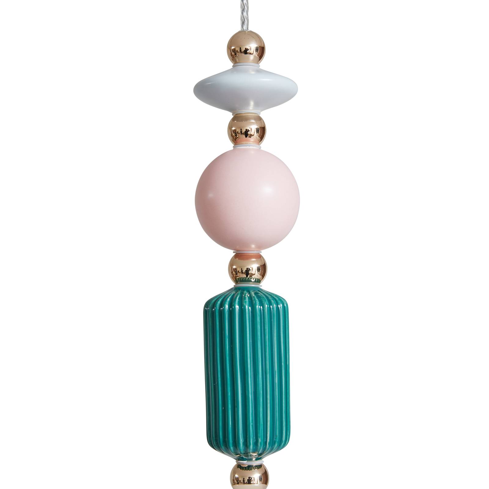 Lampada a sospensione colorata Ysoria con paralume in ceramica ed elementi decorativi di varie forme Con questa lampada porterete in casa vostra accoglienza e ottime condizioni di illuminazione. Con il suo look accattivante, Ysoria completa in modo piacevole il concetto di arredamento del vostro salotto. È possibile regolare la luminosità in base alle proprie esigenze utilizzando un dimmer esterno (non incluso). Tutte le qualità e le caratteristiche speciali del marchio Lindby si fondono in questa lampada a sospensione. La lampada a sospensione nei colori opale, ottone, verde e rosa è un must per creare un'atmosfera piacevole in ogni stanza. È dotata di portalampada E14. L'aspetto generale degli interni è completato da questa lampada, per la quale si trova subito il posto giusto. L'accattivante gioco di luci della lampada crea un'atmosfera accogliente e piacevole.