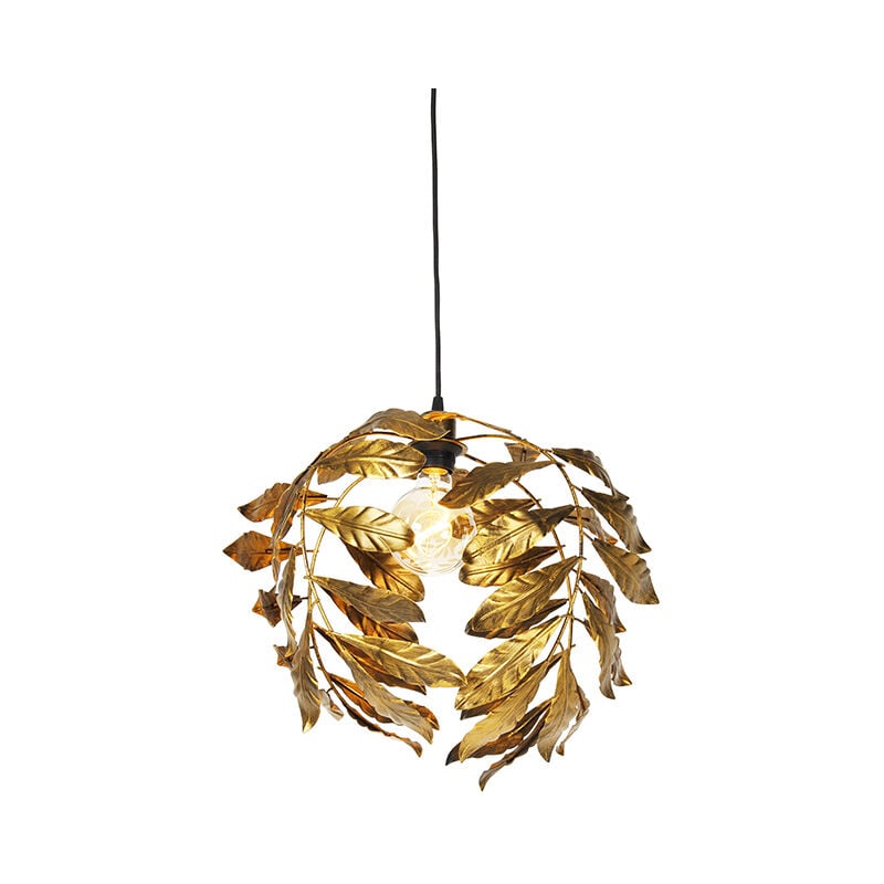 QAZQA Lampada a sospensione vintage oro antico 40 cm - Tiglio Andiamo vintage con la nostra lampada a sospensione Linden. Che attrazione sopra il tavolo da pranzo o l'isola della cucina! Il design è rifinito in modo univoco con foglie d'oro antico, che gli conferiscono un vero carattere classico. Il design aperto crea un giocoso effetto di luce nella stanza. Il diametro totale della lampada è di 40 cm e ha un'altezza di 126 cm. La piastra di montaggio ha un diametro di 10 cm. Lascia che questa lampada brilli magnificamente in casa! Nota: la sorgente luminosa non è inclusa, ordina tu stesso una sorprendente sorgente luminosa E27 (max. 60 Watt). Puoi attenuarlo con un dimmer esterno (ad es. con il tuo interruttore a parete). Una bellissima lampada che è un'aggiunta alla cucina e alla camera da letto o come attrazione nell'ingresso. Ottieni subito questa lampada unica e completa la tua illuminazione nella tua casa. Portalampada: E27 . Max 1 x 60 W, 230 V Adatto a: Incandescente