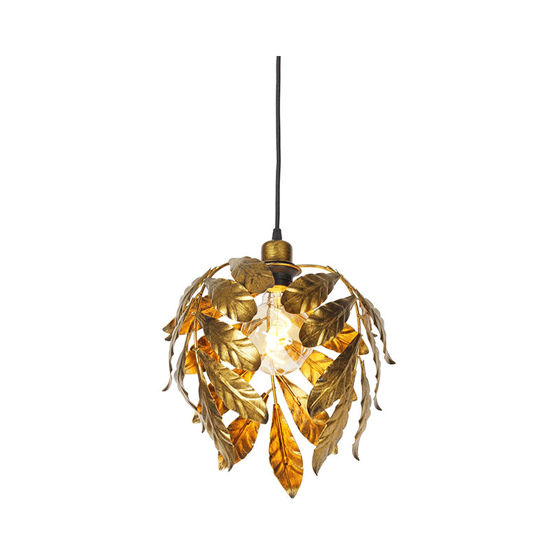 QAZQA Lampada a sospensione vintage oro antico 30 cm - Tiglio Diamo un tocco vintage alla nostra lampada a sospensione Linden. Un vero e proprio colpo d'occhio sopra il tavolo da pranzo o l'isola della cucina! Il design è rifinito in modo unico con foglie dorate anticate, che gli conferiscono un carattere davvero classico. Il design aperto crea un gioco di luci nella stanza. Il diametro totale della lampada è di 30 cm e ha un'altezza di 123 cm. La piastra di montaggio ha un diametro di 10 cm. Lascia che questa lampada illumini la tua casa! Attenzione: la lampadina non è inclusa, ordina una lampadina E27 (max. 60W) a tuo piacimento. Puoi smorzarla con un dimmer esterno (ad esempio con l'interruttore a muro). Una bellissima lampada che arricchisce la cucina e la camera da letto o che fa bella mostra di sé nel corridoio. Acquista subito questa lampada unica e completa l'illuminazione della tua casa. Portalampada: E27 . Max 1 x 60 W, 230 V Adatto a: Algogene, Incandescente, LED,Risparmio