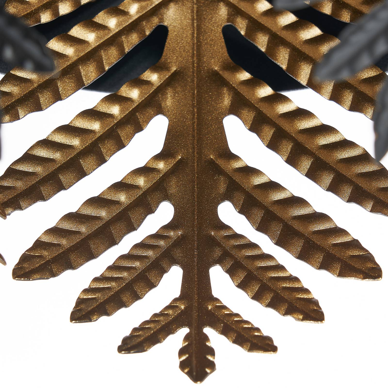 Lampada a sospensione Aparas a 2 luci con attraente decorazione a foglie, design esclusivo Aparas è una lampada a sospensione ideale per essere utilizzata sopra un tavolo da pranzo. È a 2 luci e i due paralumi assomigliano a una semisfera nella parte superiore, mentre le foglie di felce in metallo formano l'estremità nella parte inferiore, creando un grande aspetto e un disegno di luce molto attraente. L'apparecchio è caratterizzato da un design speciale e unico e i paralumi sono dorati all'interno, cosa che vale la pena di vedere e che influisce sull'effetto luminoso e aggiunge una nota calda. Il cavo in tessuto completa l'aspetto in un sorprendente colore nero.