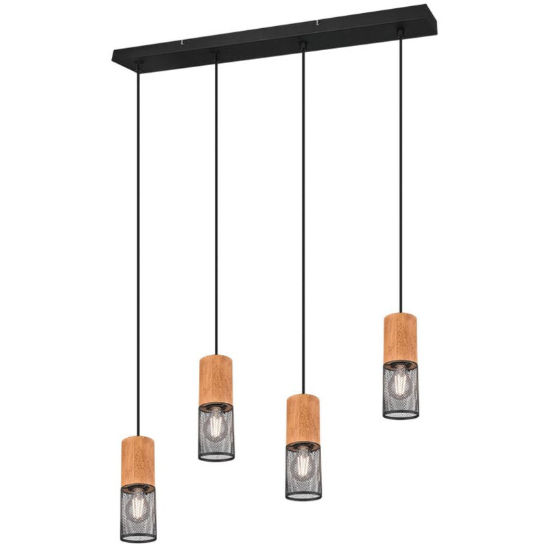 TOSH Sospensione GD Trio Tosh di GD Trio, sospensione con 4 cilindri gabbia metallo nero opaco e legno l. 70cm Caratteristiche: Gruppo di prodotto: Sospensione Tipologia: Interno Tecnologia: E27 Stile: Moderno Materiale: Metallo Colore finitura: nero opaco Classificazione IP: IP20 Classe di protezione: 1 Fonte di luce principale: Fonte di luce principale: escl. Tecnologia: LED Numero di attacchi: 4 Watt: 8 Attacco: E27 Lumen: 806 Kelvin: 2700K Volt: 230 Durata nominale (h): 10000 Numero accensioni: 10000 Classe energetica: A+ Funzionalità: Montaggio a soffitto Dimensioni: Larghezza (Cm): 65 Altezza (Cm): 150 Profondità (Cm): 9 Peso netto (Kg): 2,6