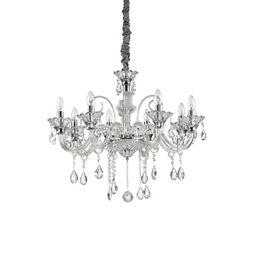 Lampada a sospensione con 8 luci modello COLOSSAL SP8 TRASPARENTE Ideal Lux Questa lampada ha una montatura e dettagli in metallo cromato Bracci in vetro soffiato trasparente
