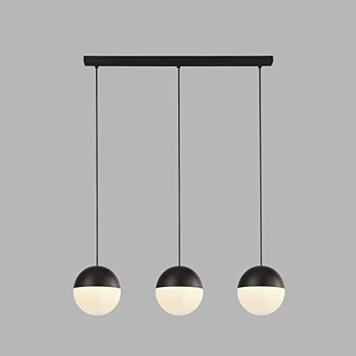 Lampada a sospensione a 3 luci Searchlight Endor, nera con vetro opale. Sfera Dia180mm