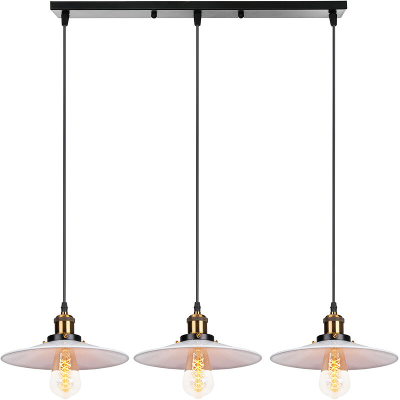• Questa lampada a sospensione combina stile moderno e vintage. Il metallo bianco, il supporto in ottone e la finitura opaca conferiscono alla lampada a sospensione un aspetto retrò che si sposa bene con gli arredi moderni e non è mai in ritardo. • Superficie anticorrosione e antiruggine, verniciatura ad alta temperatura, non facile da sbiadire, qualità garanzia. • Adatto per sala da pranzo, soggiorno, camera da letto, cucina, ristorante, gallerie, bar, birreria, laboratorio di artisti, ufficio, caffetteria, bar, club, angolo lettura, sala artigianale, scale e altri usi di illuminazione. Specifiche: • Prodotto: lampada a sospensione a 3 luci • Colore: bianco • Materiale: metalli • Dimensioni: 22*9,5 cm • Diametro soffitto: 50 cm • Cavo regolabile 100 cm • Dimensioni consigliate della stanza: 10-15 metri quadrati • Voltaggio: 220 V, adatto a tutte le lampadine a spirale E27 (senza lampadina) • Specifiche di illuminazione: Potenza: 25-60 W (massimo 60 W) Il pacchetto include: • 1 x