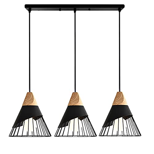 Lampada a sospensione in Metallo Legno creativo battuto lampadario in ferro E27 Luce pendente Semplice Moderno Sala da pranzo cucina Camera da letto Soggiorno Ristorante Corridoio, Nero