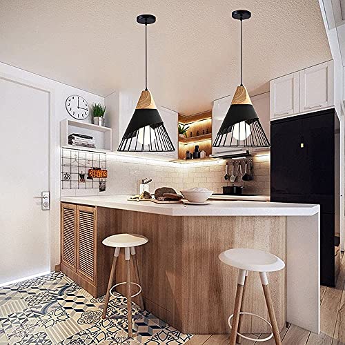 Lampada a sospensione in Metallo Legno Vintage industriale, creativo battuto lampadario in ferro adatto E27 Luce pendente Semplice per Sala da pranzo Camera da letto Soggiorno Ristorante, Nero