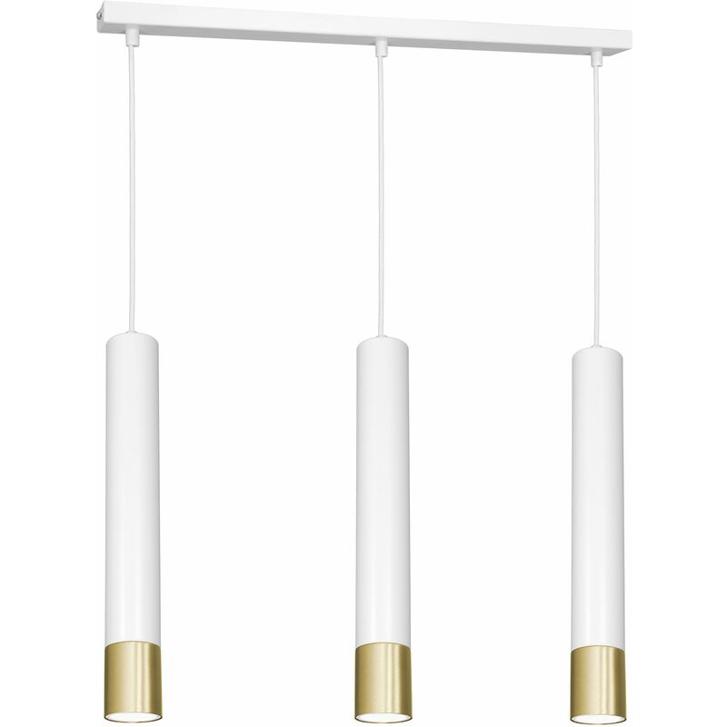Dettagli del prodotto Materiale: Metallo Dimensioni: larghezza: 60 mm, profondità di sospensione: 1100 mm, lunghezza: 600 mm Attacco: 3x GU10 fino a. 8W Classe di protezione dagli spruzzi: IP20 Colore: Oro bianco Peso: 3100 grammo