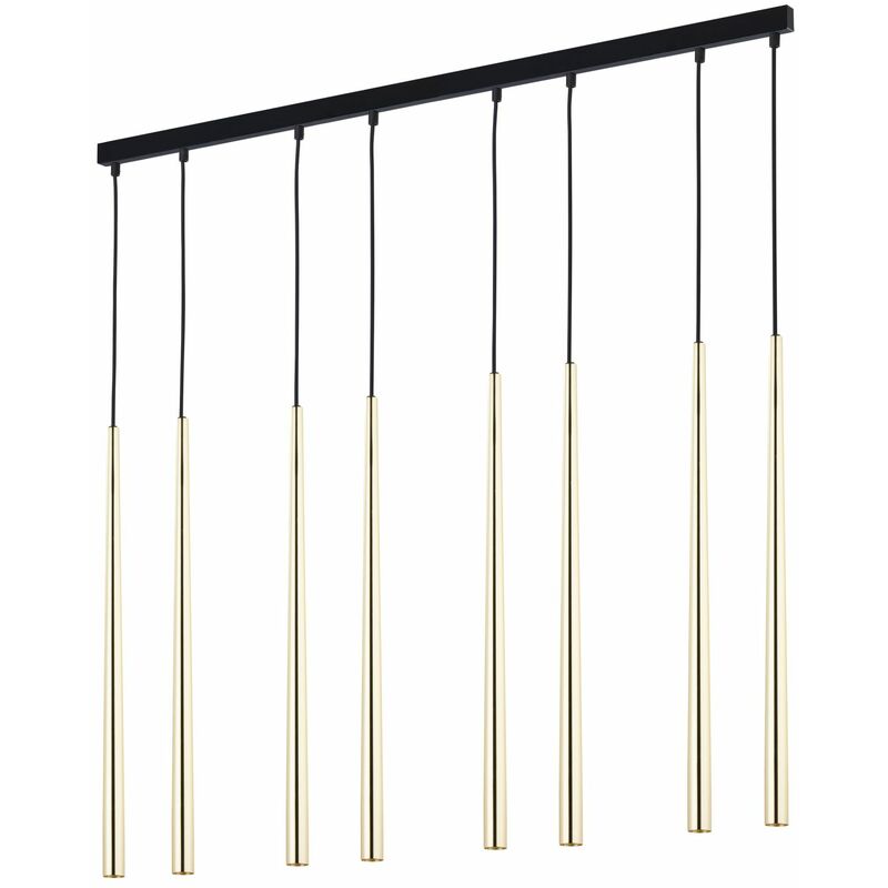 Dettagli del prodotto Materiale: Metallo Dimensioni: larghezza: 30 mm, profondità di sospensione: 1200 mm, lunghezza: 1150 mm Attacco: 8x G9 fino a. 6 W (nur für LED geeignet) Classe di protezione dagli spruzzi: IP20 Colore: Nero, Oro Peso: 4300 grammo