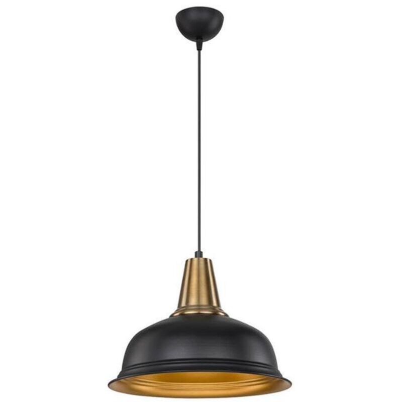 Lampada a sospensione metallo nero interno oro Rena ASZ1341 Lampada a sospensione in stile industriale. Progettata per la tua cucina, il salotto, lo studio ma anche per la tua attività commerciale. Esternamente il metallo è verniciato di colore nero con vernice epossidica, mentre l'interno del diffusore si presenta nel colore oro. Caratteristiche: Materiale metallo. Colore esterno nero. Colore interno oro. Altezza 87 cm. Altezza diffusore 24 cm. Larghezza 32,5 cm. Attacco lampadina 1 x E27 Watt. Facile da pulire Perchè scegliere la lampada a sospensione Rena? La soluzione ideale per illuminare ambienti rustici e moderni. La struttura in metallo è caratterizzata da linee morbide e pulite. Facile da installare e da pulire. Altezza: 87 Larghezza: 24 Peso: 0.65 Colore: nero Materiale: metallo Tipo Lampadina: E27 Contiene Legno: Si