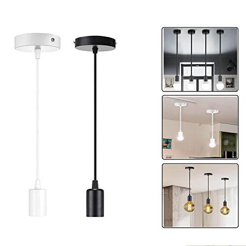 Lampada a Sospensione in metallo plastica E27 Portalampada attacco Mini Lampada a Sospensione con cavo pendente lampadario per Camera da letto sala da pranzo corridoio cucina (Nero)