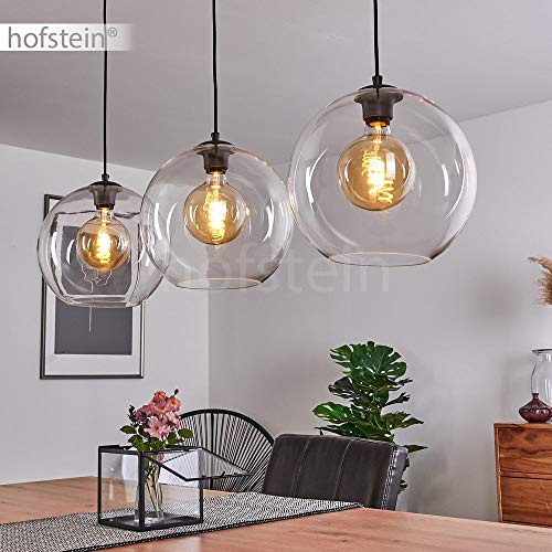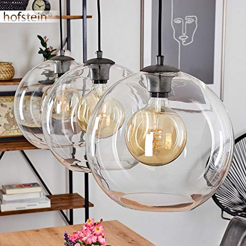 Lampada a sospensione Minhe in metallo/vetro in grigio/argento/chiaro, lampada a sospensione, 3 x E27, altezza massima 153 cm, lampada a sospensione in look retro con sfere di vetro, senza lampadina/e