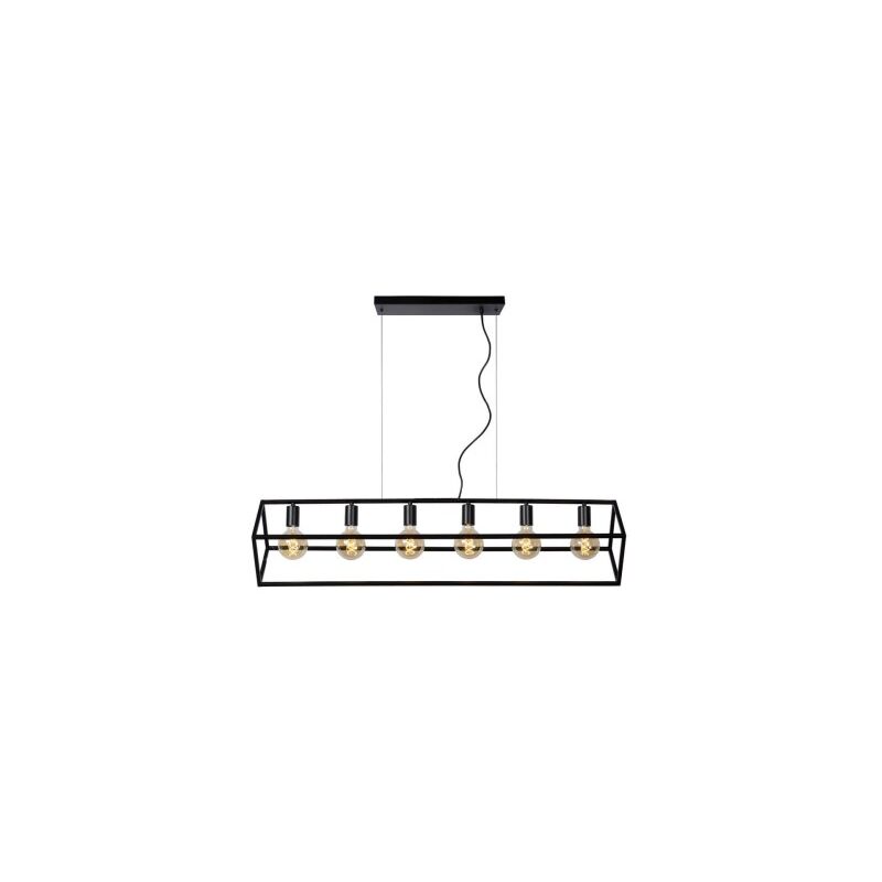 Produttore: Lucide Nome: FABIANSimbolo: 00425/06/30 Parametri altezza (mm): 500-1610 altezza paralume (mm): 280 diametro (mm): diametro paralume (mm): larghezza (mm): 1200 profondità (mm): 282 numero di sorgenti: 6 tipologia di stelo: E27potenza massima della sorgente: 40Voltaggio: 230V Sorgente inclusa: nondimmerabile: Si, utilizzando una lampadina dimmerabile.colore: neromateriale: metalloIP: 20