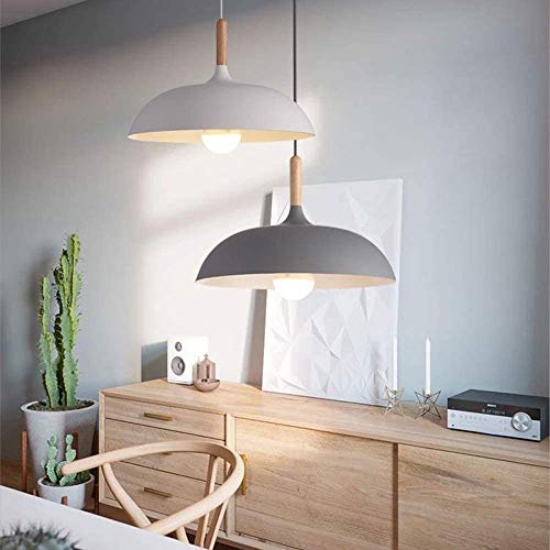 PQQ Lampada a Sospensione a Sospensione Moderna Manico in Legno Lampada a Sospensione a soffitto in Alluminio E26 lampadari a Forma di lampadari Nordic Semplice Lampada a Sospensione (Color: Grey)