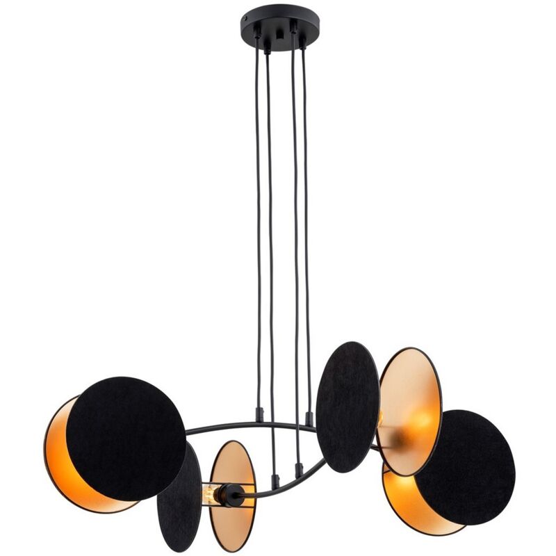 Questa lampada a sospensione è la soluzione perfetta per illuminare con stile la casa o l'ufficio. Grazie al suo design è ideale per la zona giorno e la zona notte. Kit di montaggio incluso, facile da pulire e facile da montare. Colore: Nero, Oro Materiale: Acciaio verniciato a polvere Set: 1 Dimensioni Prodotto: 82x100x70 cm Peso Prodotto: 3,00 Peso Supportato: - Info Lampadine: 4 x E27, 230V, 10W MAX LED, IP20 Lampadina: Non Inclusa Dimensioni Imballo: 98x28x28 cm Peso Imballo: 4,00 Numero di Colli: 1