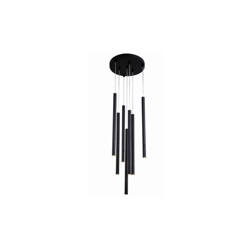 LUNGO 7 NERA LAMPADA A SOSPENSIONE - è una lampada a sospensione apparentemente modesta, ma accattivante. Il suo design attira l'attenzione degli altri. La lampada Lungo è realizzata con una struttura in metallo nero. Alla base, la cornice ha la forma di un cerchio, da cui si dipartono 7 fili, che terminano con sorgenti luminose G9. Ciascuna estremità è alloggiata in tubi neri molto stretti. Inoltre, questi cavi sono sospesi a diverse altezze, il che conferisce uno straordinario effetto spaziale, non solo quando sono illuminati. È una decorazione in sé. Questa lampada è molto lunga, circa un metro e mezzo. Per quanto riguarda lo stile dell'apparecchio, è un'illuminazione perfetta per interni moderni e modernisti, anche se si può trovare senza problemi anche nel classico bianco e nero. Funzionerà perfettamente in soggiorno, in sala da pranzo, sopra il tavolo o nell'ingresso. Ti invitiamo a dare un'occhiata alle altre lampade della serie Lungo per abbinare la dimensione e il colore