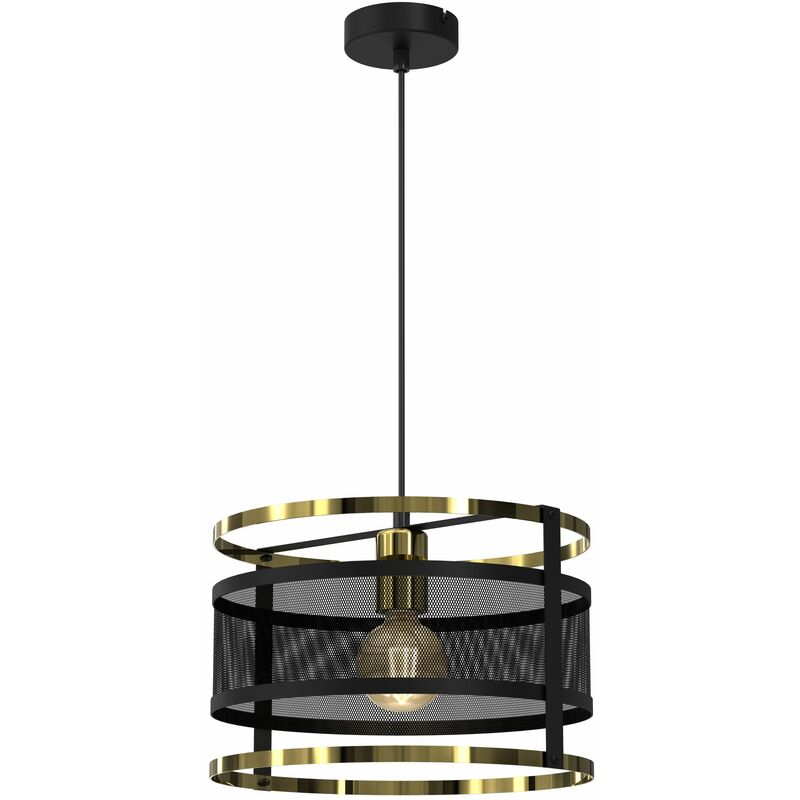 Dettagli del prodotto Materiale: Metallo, rete metallica Dimensioni: larghezza: 300 mm, profondità di sospensione: 1200 mm, lunghezza: 300 mm Attacco: 1x E27 fino a. 60W Classe di protezione dagli spruzzi: IP20 Colore: Nero, oro Peso: 1400 grammo