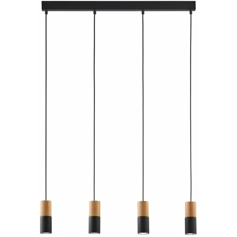 Dettagli del prodotto Materiale: Metallo, legno Dimensioni: larghezza: 52 mm, profondità di sospensione: 1600 mm, lunghezza: 710 mm Attacco: 4x GU10 fino a. 10 W (nur für LED geeignet) Classe di protezione dagli spruzzi: IP20 Colore: Nero, luce legno Peso: 1950 grammo