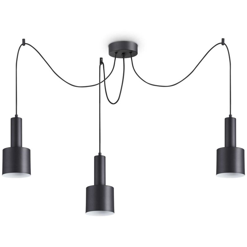 Lampada a sospensione nero L 600 x H min 500 - max 2300 x P 240 mm Caratteristiche: Lampadina inclusa=No Kit fissaggio=No Attacco lampada=E27 Volt=220-240 V AC Watt=E27 max 3 x 60W Finitura=nero Colore rosone=nero Materiale=Metallo Dimensioni= L 600 x H min 500 / max 2300 x P 240 mm
