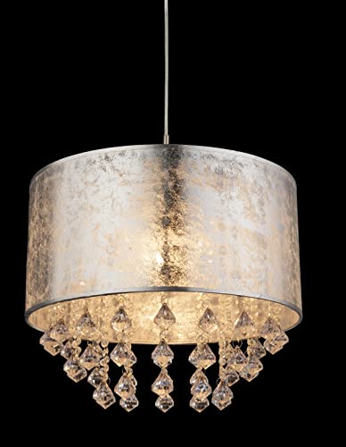 Lampada a sospensione, paralume in tessuto con cristalli, per camera da letto o soggiorno, argento metallizzato (40 cm, altezza 140 cm)