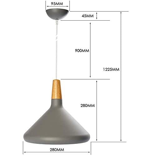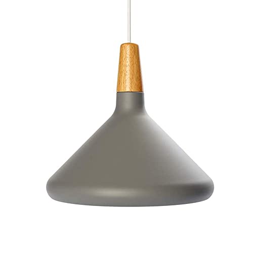 Lampada a sospensione con Paralume Vintage loft Metallo Attico Lampadario da Soffitto legna alluminio (lampadina non inclusa) E27 per cucina, ristorante, caffè, bar decorazione (Grigio)