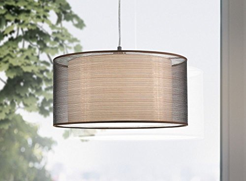 Lampada a Sospensione PERENZ-5972 cromo lucido con paralume in tessuto Altezza regolabile 100 x D.45 CM