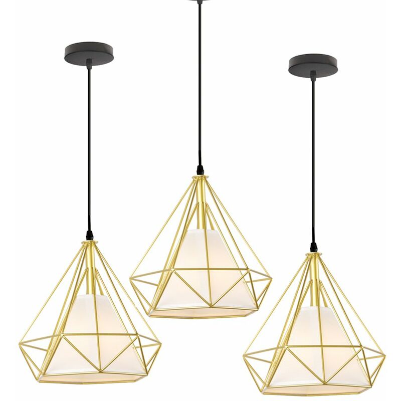 • Questo lampadario a forma di diamante con paralume è semplice ed elegante, conferendo a qualsiasi stanza un tocco retrò. • Superficie anticorrosione e resistente alla corrosione, vernice ad alta temperatura, non facile da sbiadire, garanzia di qualità. • Tutti gli accessori per l'installazione sono già inclusi nella confezione. L'installazione richiede solo pochi minuti ed è molto facile da usare. • Ideale per soggiorni, luoghi di lavoro, cucine, scale, corridoi, showroom, bar, ecc. Specifiche: • Prodotto: Lampadario a forma di diamante • Stile: Stile industriale • Colore: Oro • Misure: altezza 24 cm, larghezza 25 cm • Diametro soffitto: 10 cm • Cavo regolabile: 100 cm • Dimensioni consigliate della stanza: 10-15 mq • Voltaggio: 220 V, adatto a tutte le lampadine a spirale E27 ( senza lampadina) • Specifiche illuminotecniche: Potenza: 25-60 W (60 W massimo) La confezione include: • 3 x lampada lampadario a forma di diamante