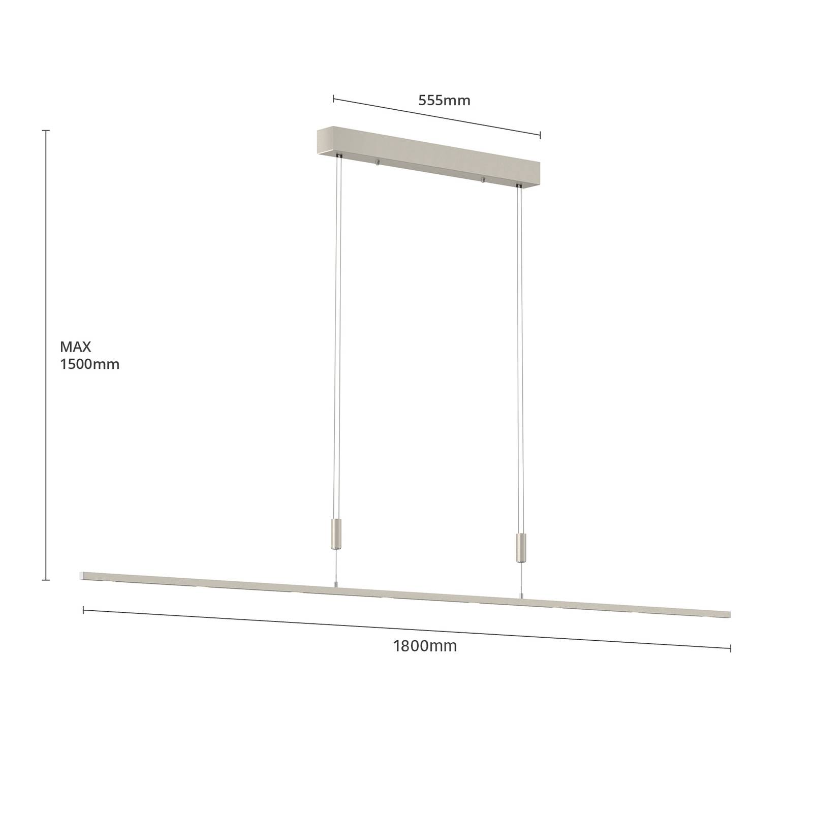 Lampada a sospensione stretta a LED Tolu - made in Germany "Made in Germany" è sinonimo di lavorazione di alta qualità e della migliore qualità. Queste caratteristiche descrivono anche la lampada a sospensione Tolu LED, il cui paralume sottile con finitura in nichel spazzolato opaco contiene otto LED Citizen di alta qualità, di colore bianco caldo. Tolu può essere dimmerata anche con un dimmer esterno (dimmer di fase o di bordo). Inoltre, grazie al meccanismo saliscendi facile da azionare, la Lamp è regolabile in altezza in modo continuo. Chi sceglie Tolu può godere di un apparecchio esclusivo che convince subito per i suoi numerosi vantaggi.