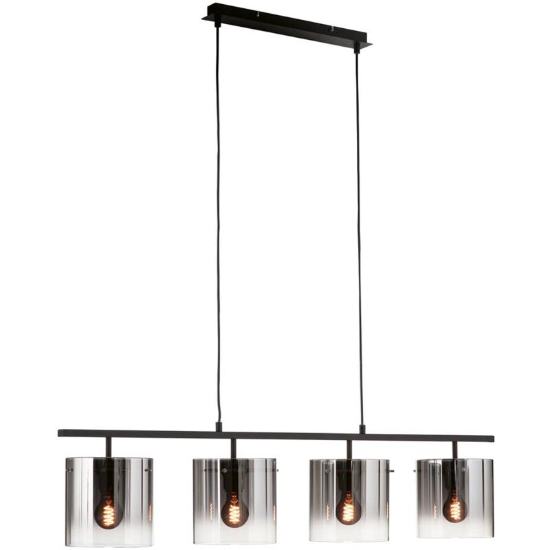 Lampada a sospensione SAMU E27 4x40W metallo nero sabbia, vetro fumé L: 112 cm L: 5,7 cm A: 185 cm dimmerabile Dimensioni in mm: Lunghezza: 1120, larghezza: 57, altezza: 1850, Peso in kg: 5.016 Tipo di lampadina/ attacco: E27 Lampadine incluse: NO Potenza in Watt: 4x40 Grado di protezione: IP20 Dimmerabile: SÌ Interruttore: NO Materiale alloggiamento: metallo Colore alloggiamento: nero sabbia Materiale vetro/paralume: vetro Colore vetro/paralume: da fumé a trasparente a specchio