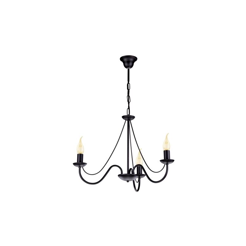 Candeliere per interni industriali Il lampadario regolabile K-3990 sospeso su una catena, con possibilità di modificare l'altezza, è la nostra soluzione di illuminazione per i vostri interni. L'intera struttura è stata conservata in uno stile elegante e sobrio che ricorda il gotico, ma anche industriale. Alle estremità dei bracci della lampada sono posizionate tre sorgenti luminose. Il telaio del prodotto è realizzato in metallo di altissima qualità. Se scegli fonti luminose a forma di coni o fiamme, la lampada assomiglierà sicuramente ad un classico candeliere. Il colore della lampada aggiunge modernità: nero uniforme e opaco. Caratteristica è anche la mancanza di molte decorazioni sulla struttura. Una lampada universale non solo per la casa. La lampada può essere divisa in due interruttori in un sistema 2+1, il che significa che puoi accendere quante lampadine vuoi contemporaneamente. tempo. Il lampadario è dotato di portafilo E14, ovvero il popolare "filo piccolo". Installa la