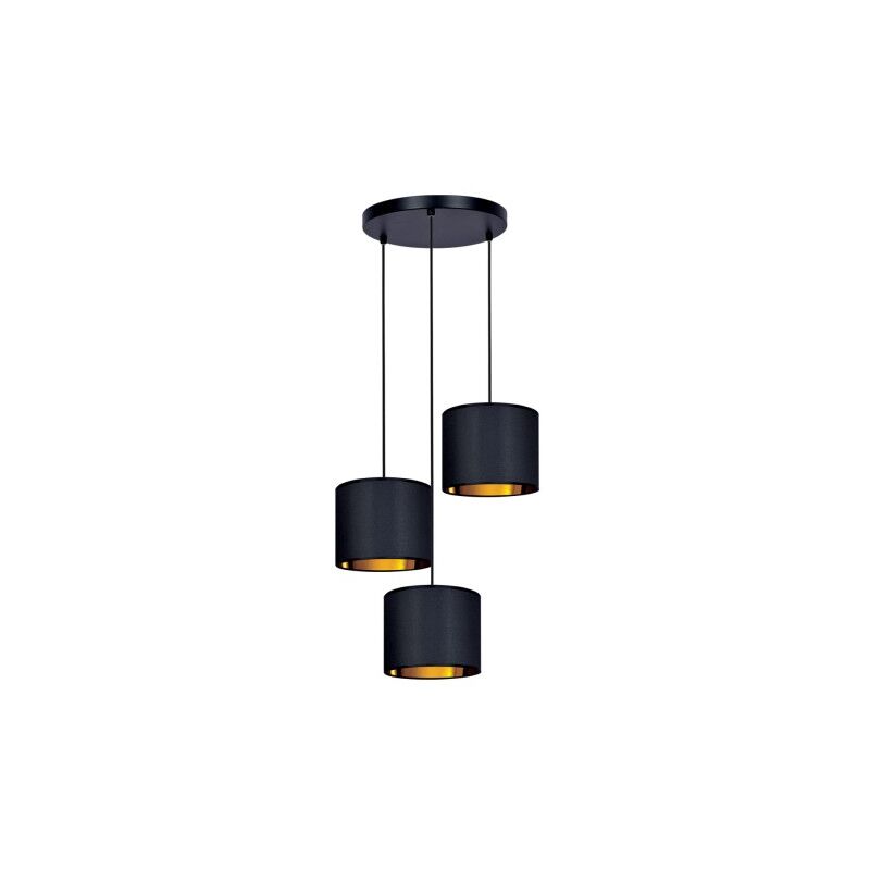 Design funzionale per la tua casa. Una lampada a sospensione su un rivestimento rotondo del soffitto è una soluzione di illuminazione per il soggiorno, dove sarà il punto focale. Per la cucina o la sala da pranzo, l'ideale è sopra un tavolo, soprattutto rotondo o quadrato. Il modello è composto da un rivestimento a soffitto rotondo in metallo e tre paralumi neri e dorati, di 20 cm di diametro, sospesi su cavi regolabili. L'altezza massima può essere di 100 cm. Il prodotto è dotato di attacchi E27, quindi puoi scegliere facilmente le lampadine più adatte a te. Decidi quale colore della luce ti si addice meglio, da caldo, a neutro, a freddo. Scegli anche la potenza e la forma della lampadina. La lampada può essere divisa in due interruttori, in un sistema 2+1, il che significa che puoi accendere solo una, due o tre lampadine.AURO - una famiglia di eleganti lampade con paralumiNella famiglia di lampade AURO troverai altri modelli con paralumi neri e paralumi oro, in due misure. Esistono