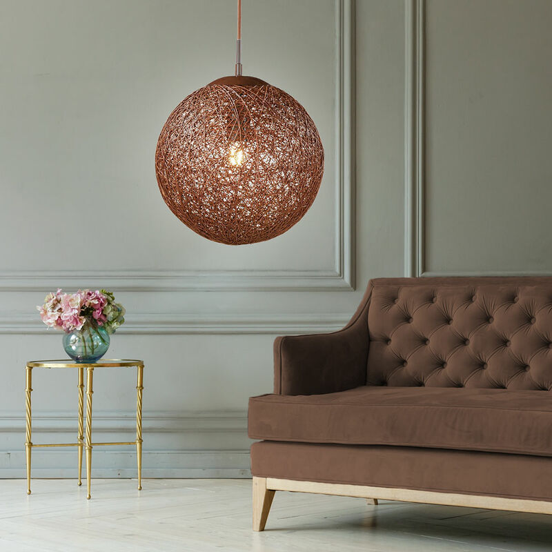 Descrizione Lampada a sospensione di alta qualità per il soggiorno. Questa lampada attira davvero l'attenzione grazie al paralume sferico in intreccio di rattan marrone. Questa lampada a sospensione sta particolarmente bene sopra il tavolo del soggiorno o della sala da pranzo. div> dettagli apparecchio • Tipo di luce: lampada a sospensione • Materiale: rattan intrecciato • Colore: marrone medio • Grado di protezione: IP20 • Diametro paralume in cm: 30 • Altezza totale in cm: 150 • Attacco: 1x E27 • Lampadine incluse: Sì • Potenza lampadina: 1x 11 watt• Flusso luminoso: 1x 950 lumen• Colore luce: bianco caldo • Alimentazione: 220-240V, 50-60Hz Dettagli sorgente luminosa • Tipo di sorgente luminosa: Samsung SMD LED • Attacco: E27 • Design: Sfera (bianco-opale) • Materiale: Plastica • Flusso luminoso: 950 lm (lumen) • Consumo energetico: 11 kWh/1000h • Temperatura colore ur: 3000 K (Kelvin) • Colore della luce: bianco caldo • Resa cromatica (CRI): 80 • Consumo energetico nominale: 11 W