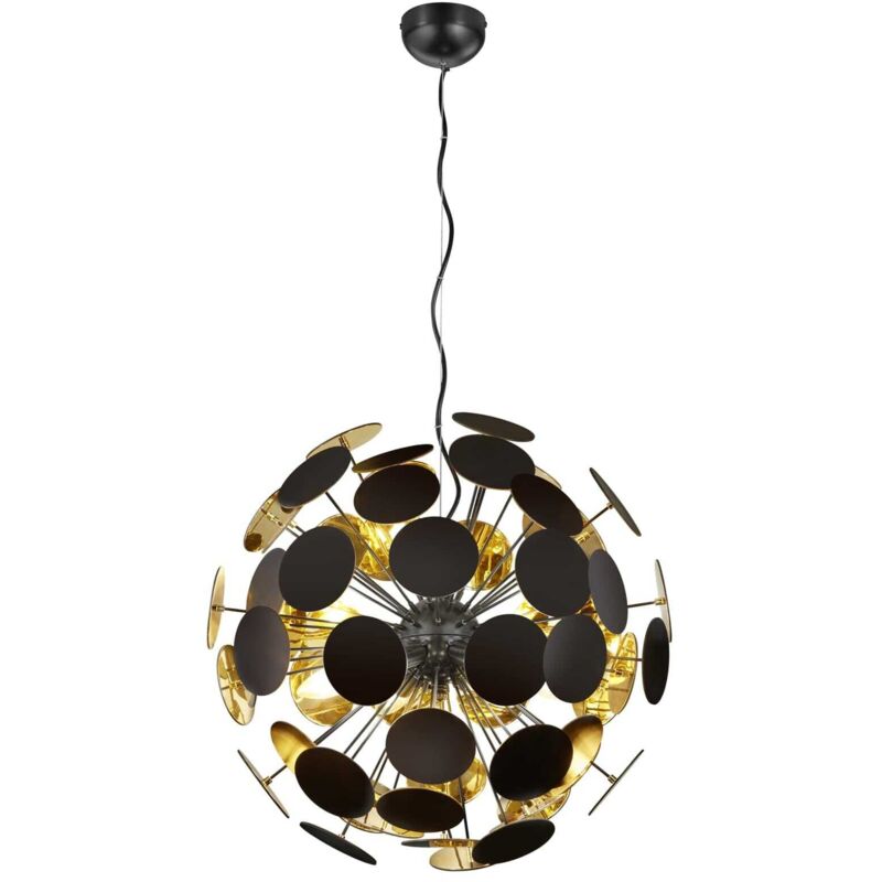 DISCALGO Sospensione GD Trio Discalgo di GD Trio, sospensione sfera tondi metallo nero opaco + oro d. 54cm Caratteristiche: Gruppo di prodotto: Sospensione Tipologia: Interno Tecnologia: Lampadina esclusa Stile: Stile giovane Materiale: Metallo Colore finitura: nero opaco Classificazione IP: IP20 Classe di protezione: 1 Fonte di luce principale: Fonte di luce principale: escl. Tecnologia: E14 Numero di attacchi: 6 Watt: 4 Attacco: E14 Lumen: 470 Kelvin: 3000K Volt: 230 Durata nominale (h): 10000 Numero accensioni: 10000 Classe energetica: A++ Funzionalità: Montaggio a soffitto Dimensioni: Altezza (Cm): 150 Diametro (Cm): 54 Peso netto (Kg): 3,42
