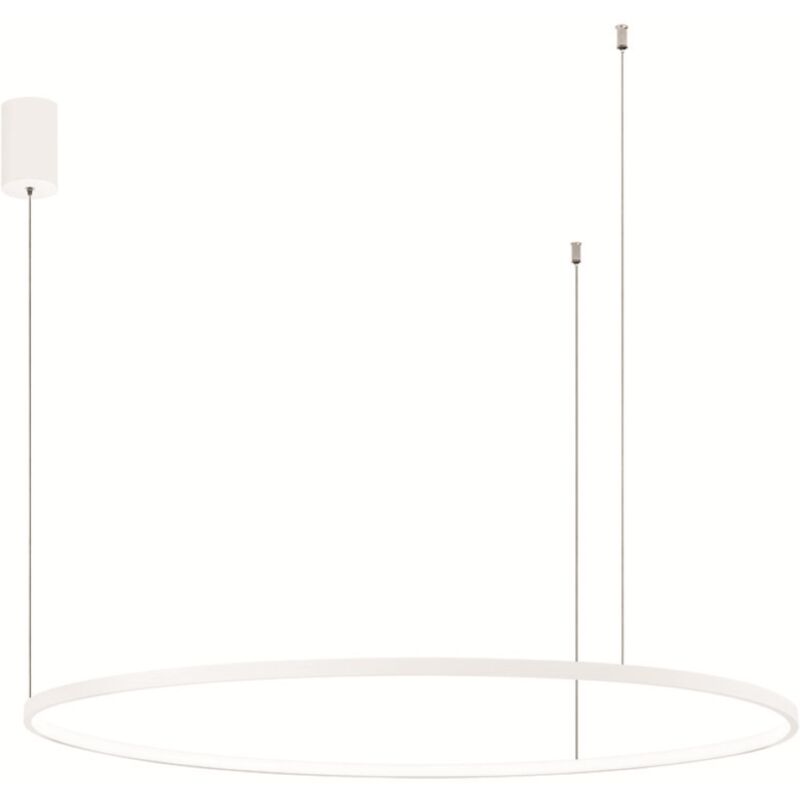 Lampadario a sospensione Led SOEL realizzato interamente in metallo verniciato. Cavetti regolabili in lunghezza. Dotata di sistema CCT, questa funzione permette di regolare l'intensita' luminosa della sospensione tra 3000 e 4000K mediante un pratico telecomando. Una lampada dal design moderno, perfetta per arredare e illuminare ogni spazio della vostra casa con un tocco di originalita'. CARATTERISTICHE Colore: Bianco Materiale: Metallo Tipologia: Lampada a sospensione Modello: Grande Altezza max: 169 cm Diametro: 100 cm Dimmerabile: Si Illuminazione: LED integrato Potenza: 47W 2820-4700 LM Input: 220-230V Colore luce: CCT SYSTEM 3000K - 4000K