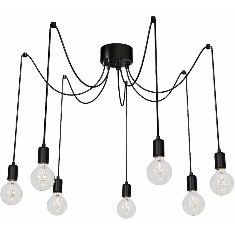 Dettagli del prodotto Materiale: Metallo Dimensioni: larghezza: 2500 mm, profondità di sospensione: 2500 mm, lunghezza: 2500 mm Attacco: 7x E27 fino a. 60 Watt Classe di protezione dagli spruzzi: IP20 Colore: Nero Descrizione del prodotto Lampadario a sospensione in stile moderno;