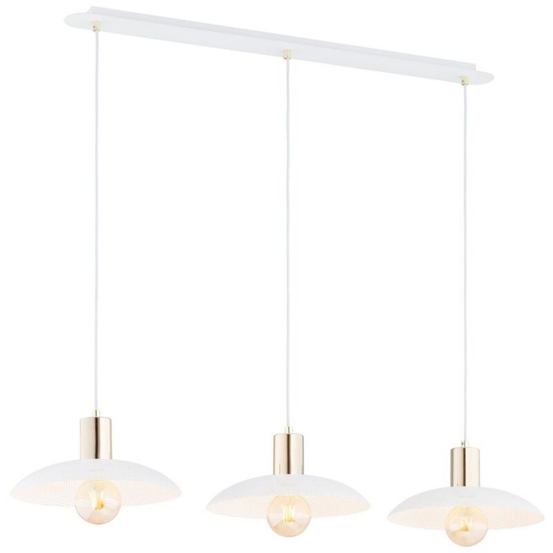 Questa lampada a sospensione è la soluzione perfetta per illuminare con stile la casa o l'ufficio. Grazie al suo design è ideale per la zona giorno e la zona notte. Kit di montaggio incluso, facile da pulire e facile da montare. Colore: Bianco Materiale: Acciaio verniciato a polvere Set: 1 Dimensioni Prodotto: 90x100x30 cm Peso Prodotto: 3,10 Peso Supportato: - Info Lampadine: 3 x E27, 230V, 10W MAX LED, IP20 Lampadina: Non Inclusa Dimensioni Imballo: 98x28x28 cm Peso Imballo: 4,10 Numero di Colli: 1